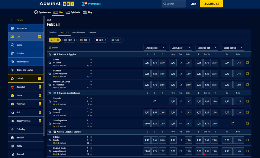 Sobald ein Spiel läuft, verlagert sich die Action ins Live-Center von AdmiralBet. Auch hier dominieren Fußball und Tennis das Geschehen, dicht gefolgt von Basketball und Eishockey. Für euch als Kunden von AdmiralBet in Deutschland ist das Wichtigste gesichert: Die Top-Ligen laufen zuverlässig live durch.
