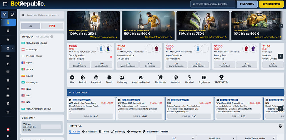 betrieben. Trotz des jungen Alters positioniert sich BetRepublic mit einem breiten Angebot aus Sportwetten und Casino